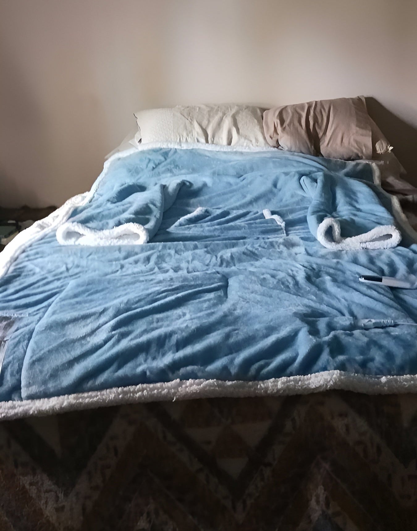 Portable power bank means you're not stuck near outlets. Wear it while you work, watch TV, or read. The zipper keeps it secure so it doesn't slip off like regular blankets.
