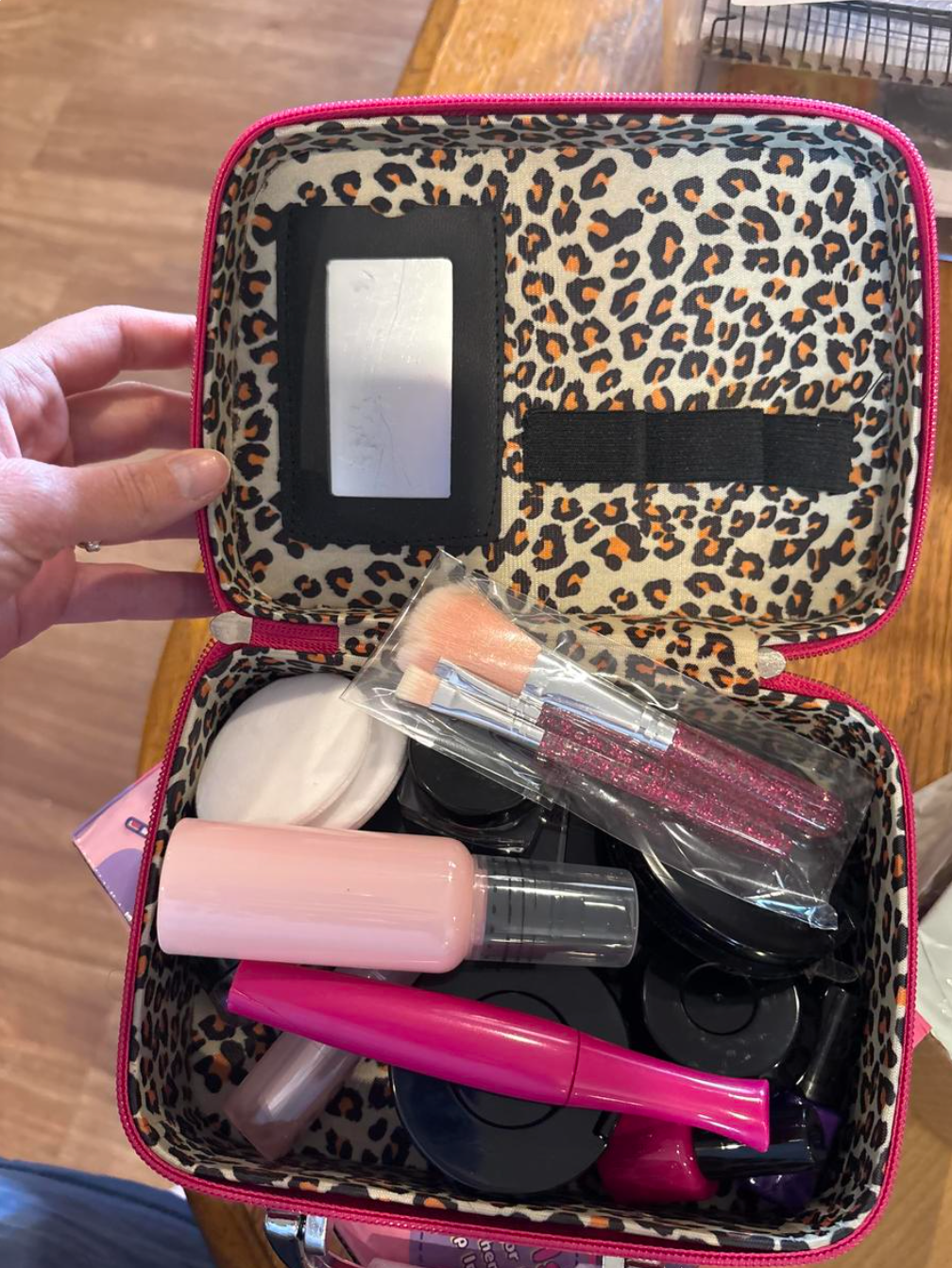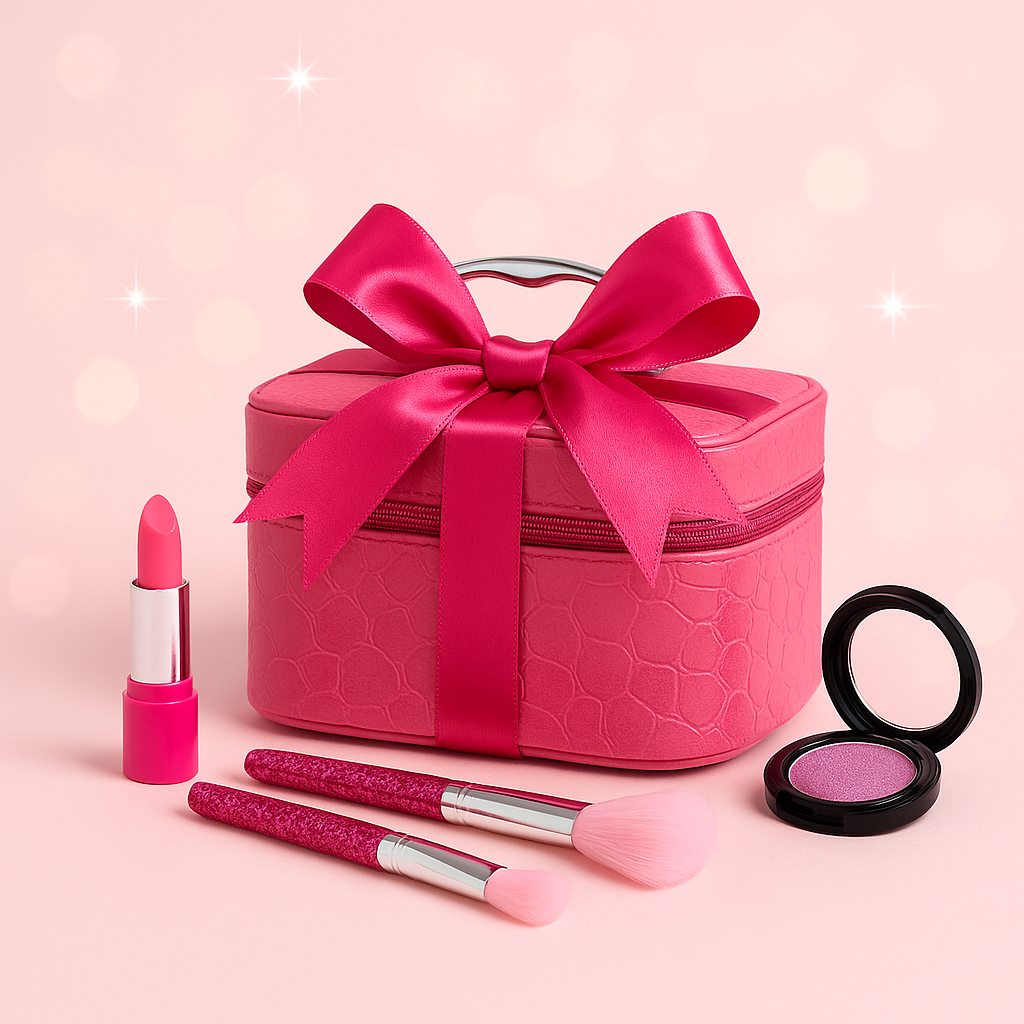 "I was worried about giving my daughter makeup but this is perfect. She gets to feel like mommy without any actual products on her face. The pretend lipstick and brushes look so real. Great quality for the price." ★★★★★ — Maria K.