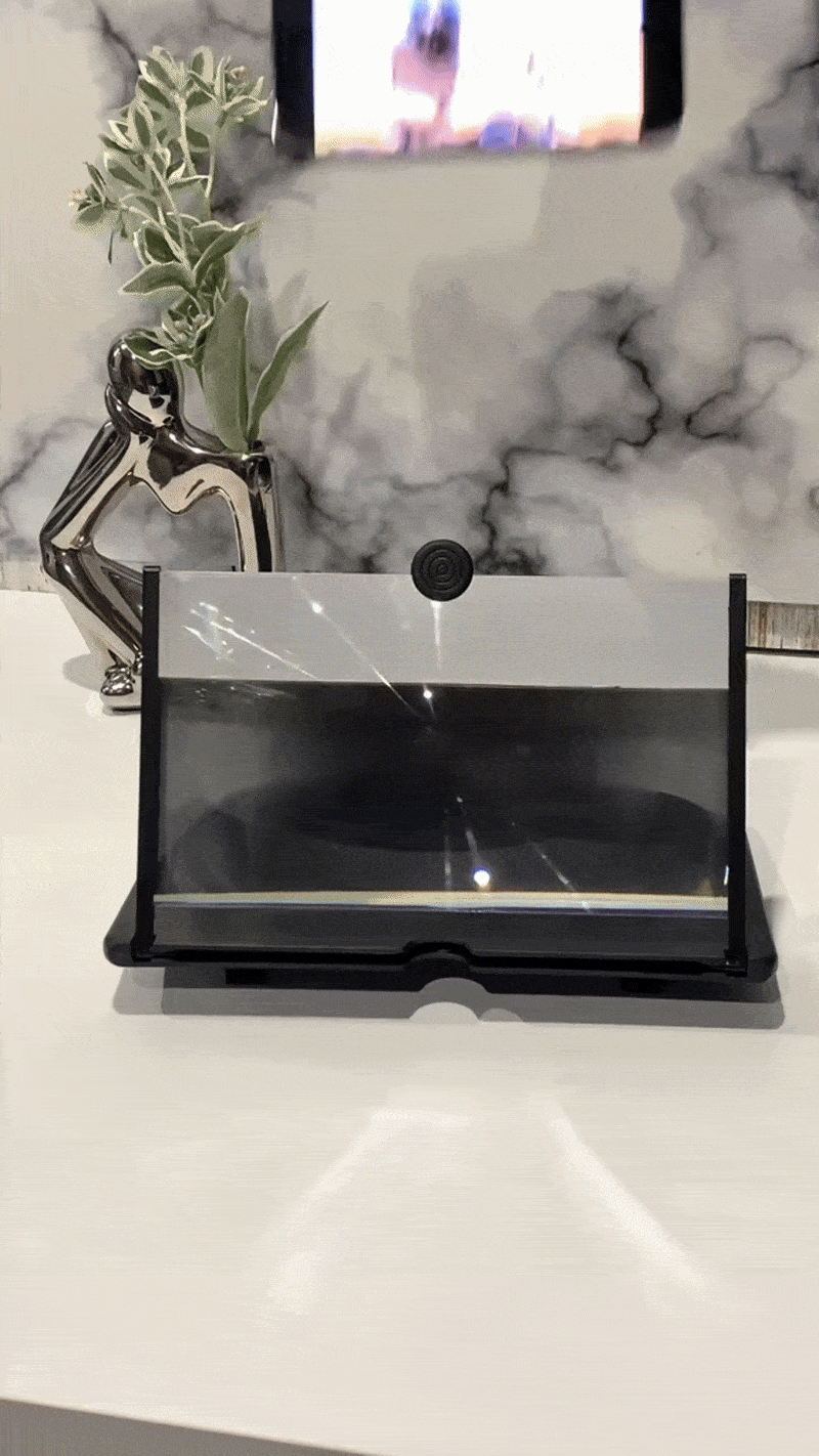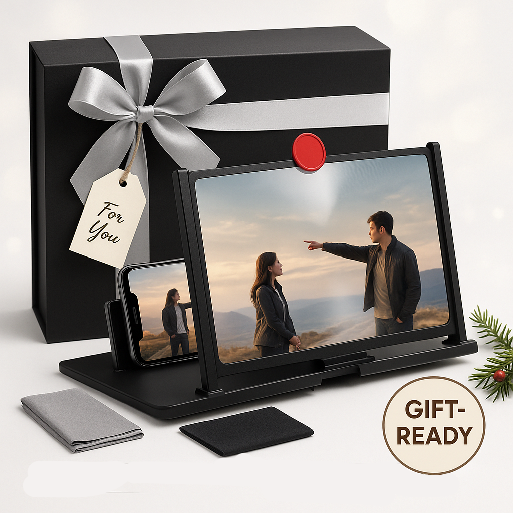 ScreenBoost™ ends the struggle. Place your phone in the stand and the screen enlarges 3-4x instantly. Watch from your couch, bed, or chair without holding anything.